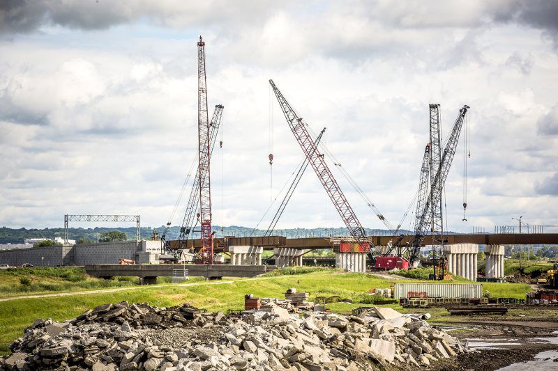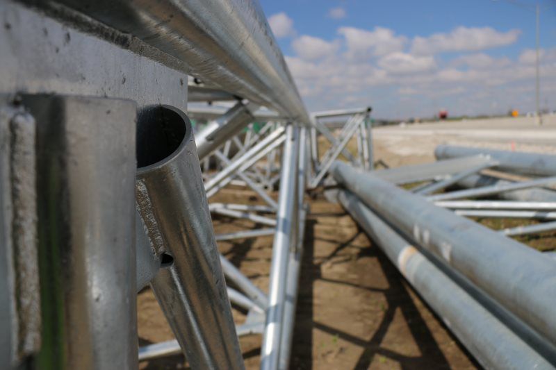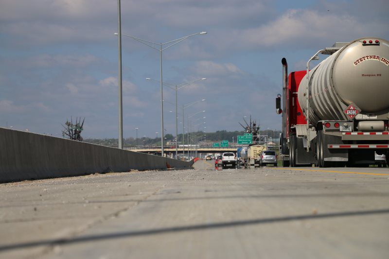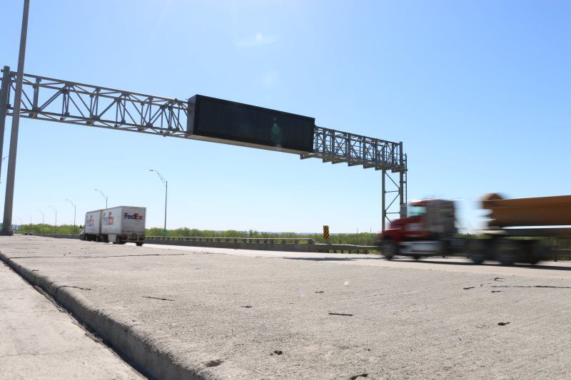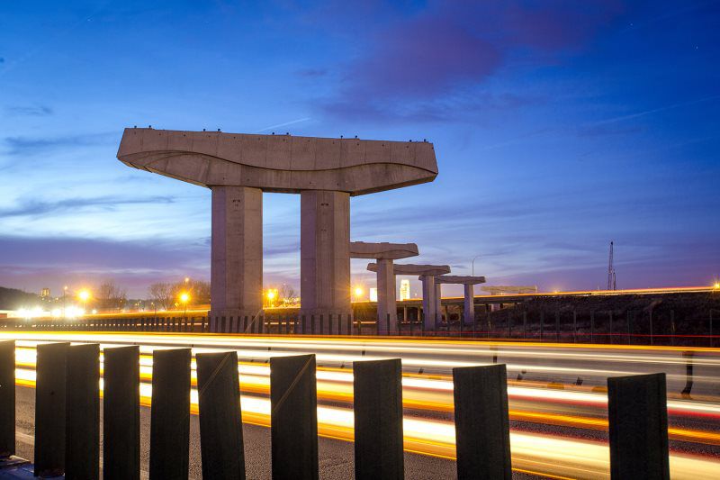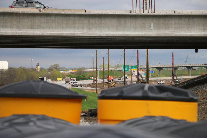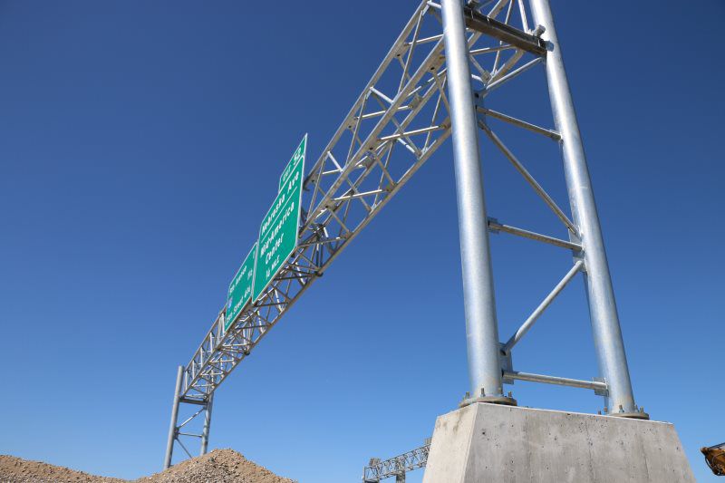 Major work included the installation of (8) 120' and 140’ high mast tower lighting poles with 48" diameter drilled shafts ranging in size from 30’ to 48’ deep, (3711 sq ft) of Type B extruded back sign panels, (1) 50’ overhead sign structures, (1) 90’ overhead sign structure, (2) 100’ overhead sign structure, (1) 115’ overhead sign structure, and (1) 130’ overhead sign structure, and (6000’) of electrical circuits.
