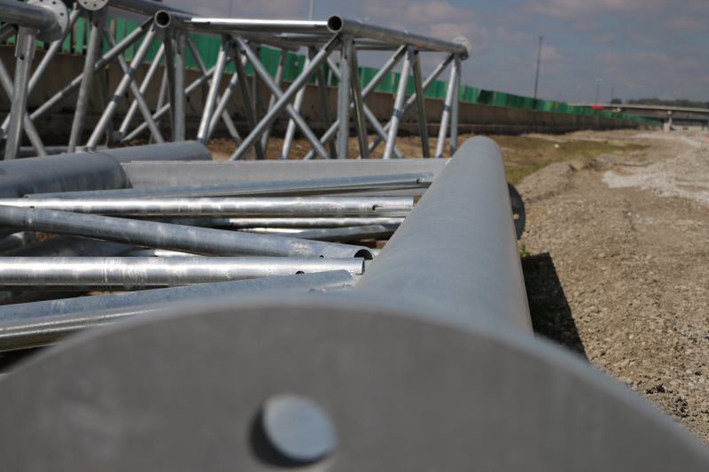 The IADOT also required the removal and relocation of an existing 70’ box truss DMS Structure and Daktronics DMS Sign. The relocation of the entire structure and digital sign was required to be completed within a 2 week window. Due to the requirement to keep lanes open on I80, a 120ton crane was used to remove the entire structure and sign in one lift. The structure and DMS where loaded onto trailers and relocated to the new site. From start to finish, the entire operation for relocating the structure/DMS board was completed in three back to back nights. High praises were again given by the IADOT Commercial vehicle enforcement, IADOT/HDR, and the Joint Venture on another smooth, thoroughly coordinated and executed installation.