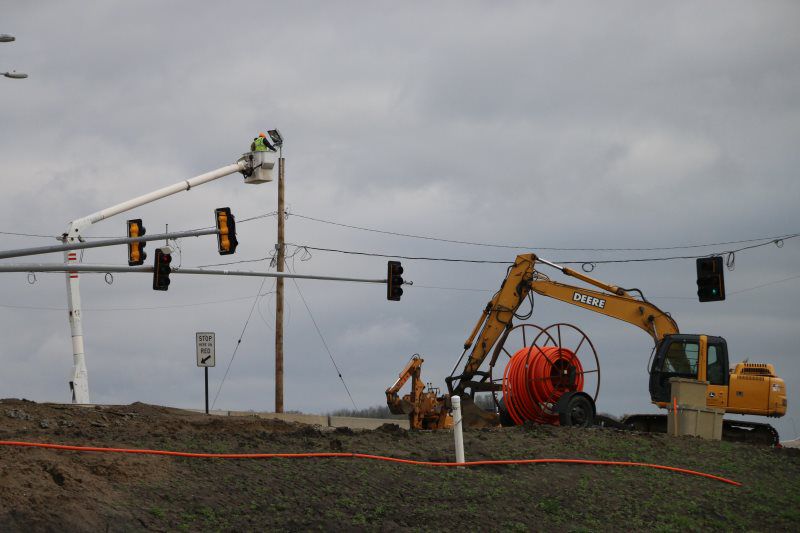 The traffic signal installation included mast arm and lighting poles ranging from 25’ to 70’ long with foundations up to 42” diameter by 21’ deep, (15) signal heads, Wavetronix Presence and Advanced detection equipment at both the temporary and permanent signal intersection, GPS Opticom preemption systems, NEMA Signal controller with Battery Backup Systems (BBS), (1400’) of 2” and 3” trenched/bored conduits with related IMSA signal circuit wiring, and a Tesco meter pedestal. Signal foundations were again constructed via drilled shafts meeting the IADOT standards for Wet Shaft construction with polymer and mineral slurries ranging in size from 36" in diameter by 10' deep up to 42" in diameter by 21' deep