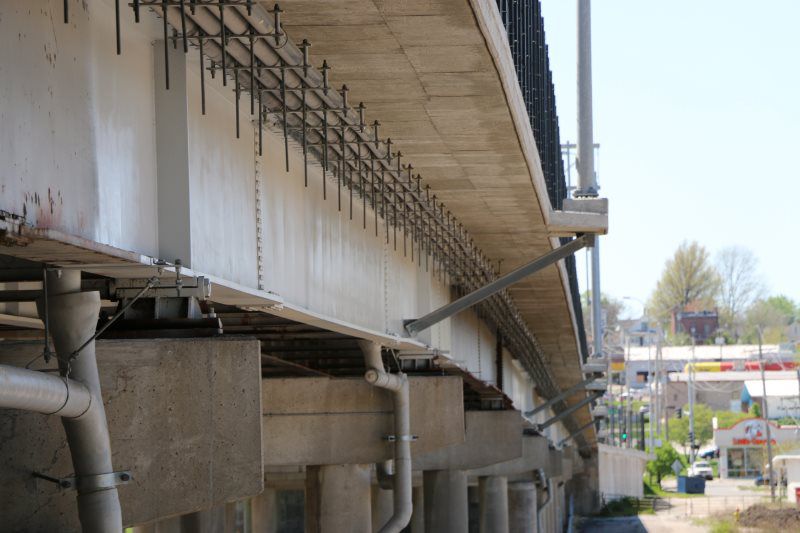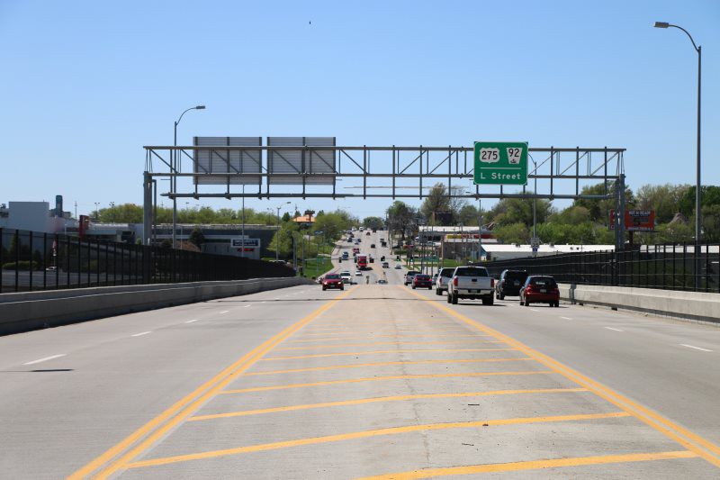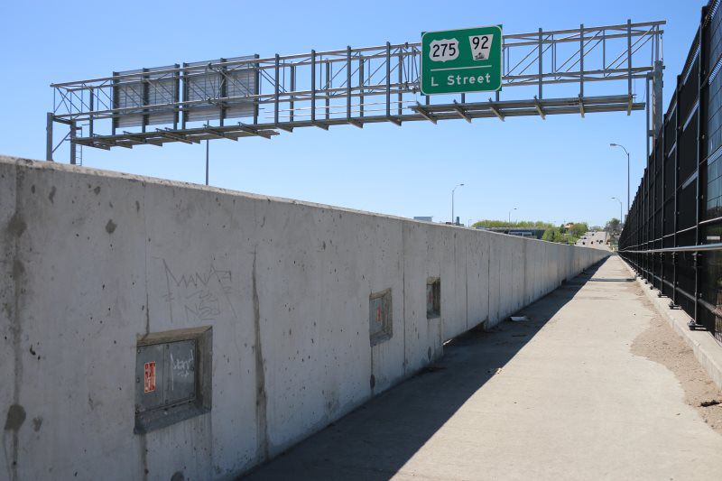The work site conditions were difficult due to the bridge going over an active railroad yard and mainline tracks for UPRR. Coordination was required to be maintained at all times during the installation of the 4” fiberglass conduit system on the underside of the bridge. Protections were always in place with RR flaggers, track protection, fall arrest systems, and related safety equipment. Due to the close communication with NDOR, UPRR, and Hawkins Construction, the project was completed ahead of schedule with no issues.