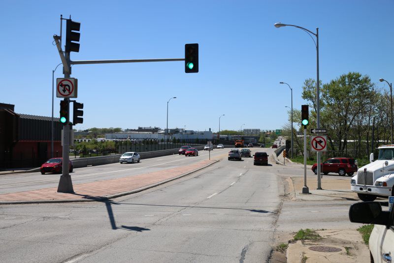 Major work included the installation of (2) temporary traffic signal intersections, (2) permanent traffic signal intersections with new controllers/cabinets, (2600’) electrical circuits, (12) bridge mounted street lighting units, (24) under-deck lighting units, (3800’) 4” Fiberglass conduit, and (2) cantilever sign structures.